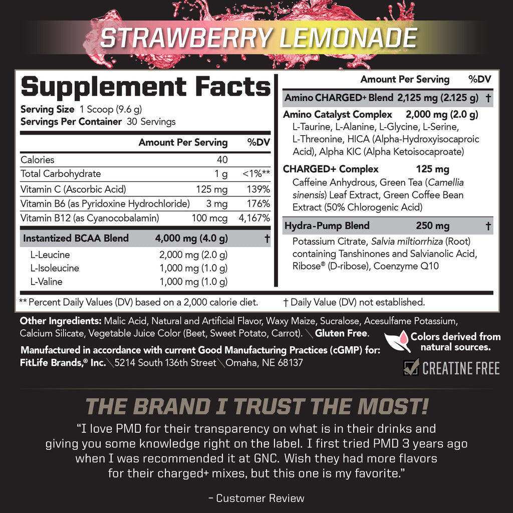 FOR DAILY ENERGY: Mix 1 scoop of PMD’s BCAA CHARGED+ with 8 fl. oz. of cold water and take in the morning for energy and focus. Or use during the day as a healthier alternative to those sugary and high calorie energy drinks.