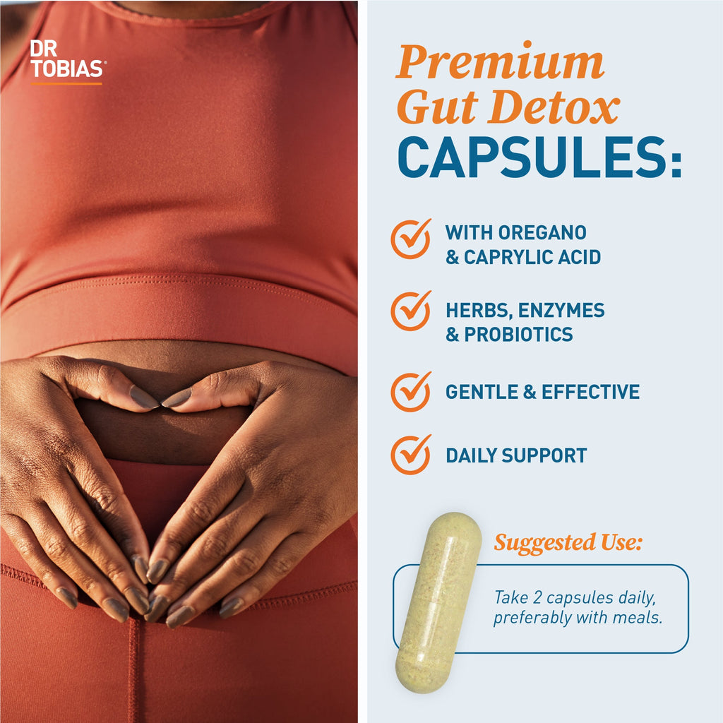 Dr. Tobias Candida Support is back! Our premium gut flora balance complex for women and men harnesses the power of natural ingredients to gently and effectively detoxify the body, starting with the gut. This potent blend includes Oregano leaf extract, Caprylic Acid, Digestive Enzymes, Probiotics, Aloe Vera, Reishi Mushroom, and Anise Seed, which work synergistically to cleanse and replenish your gut microbiome in the following ways: